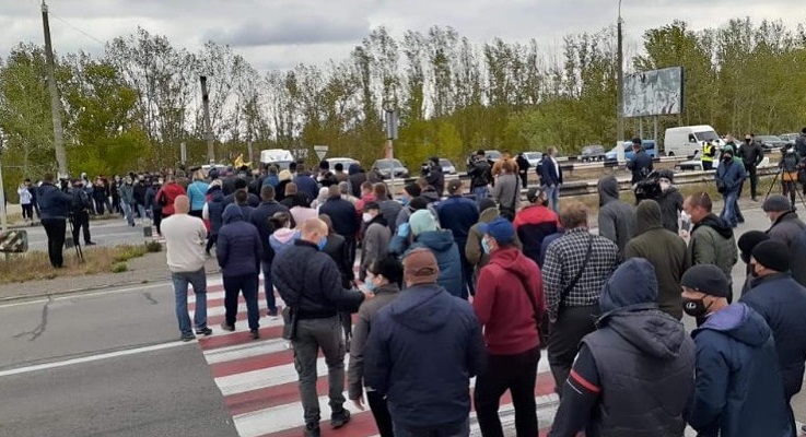 Один из протестующих выбросил на проезжую часть огурцы, мотивируя свой поступок тем, что ему стало некуда сбывать свою продукцию. Участники акции требуют встречи с главой обладминистрации и не реагируют на призывы полиции соблюдать дистанцию и условия карантина.