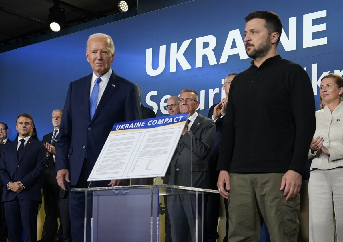На саммите в Вашингтоне был принят «Украинский договор» (Ukraine Compact), который определяет позицию НАТО по конфликту на Украине. Подписи под договором поставили президенты и премьер-министры 24 стран, включая Украину, а также лидеры Евросоюза.