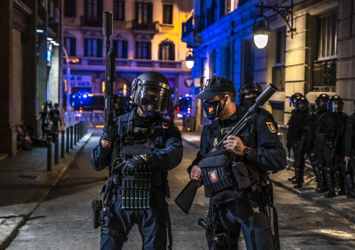 Не менее 20 сотрудников правоохранительных органов получили травмы в ходе беспорядков в Барселоне из-за акций протестов против мер местных властей по сдерживанию пандемии COVID-19.