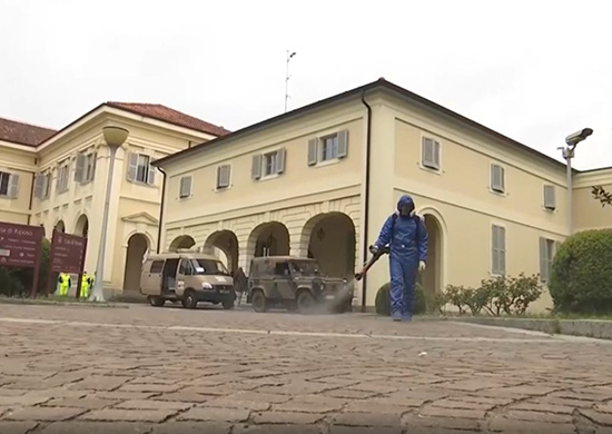 По данным Минобороны РФ, 1 апреля российские военные провели полную дезинфекцию ещё трёх пансионатов для пожилых людей в коммунах Брембате-ди-Сопра, Понте-Сан-Пьетро и Понтида. Всего вместе с итальянскими коллегами они обработали 17 лечебных учреждений в провинции Бергамо.