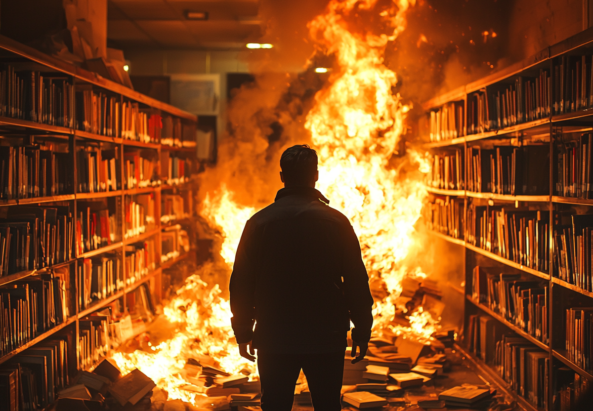 По информации полиции, 35-летний мужчина облил книги зажигательной смесью и поджег их. Он объяснил свои действия тем, что, по его мнению, книги содержали искаженное изображение исторических событий.