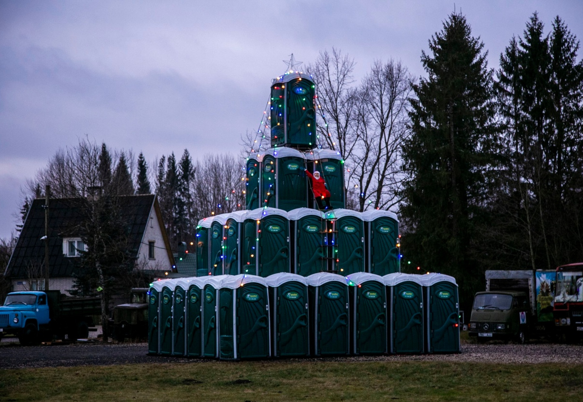 В Эстонии появилась рождественская ёлка из биотуалетов