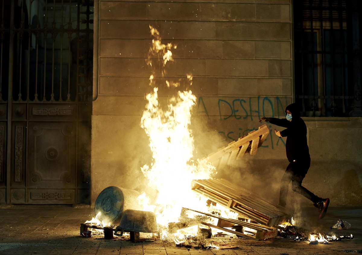Протесты в различных городах Испании проходят с 27 октября. Обычно они начинаются вполне мирно, но в какой-то момент перерастают в погромы и столкновения с полицией.