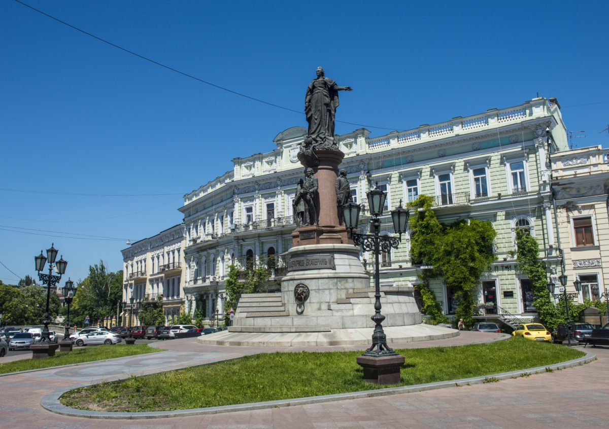 Инцидент произошел днем 13 сентября, на кадрах видно, как две молодые женщины поливают красной краской памятник, посвященный Екатерине II и ее сподвижникам — основателям Одессы.