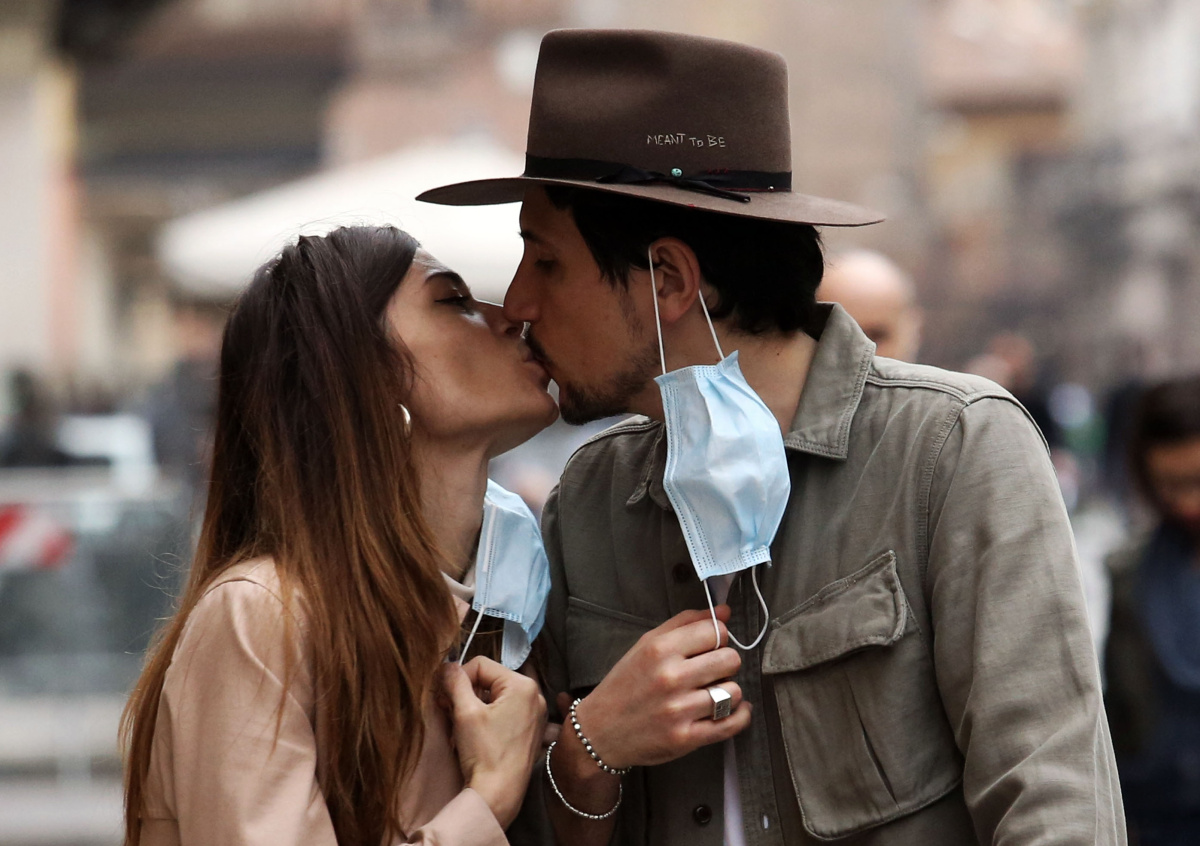 В Италии влюблённая парочка была оштрафована за несоблюдение масочного режима после того, как полиция застала их во время поцелуя на одной из улиц Милана.