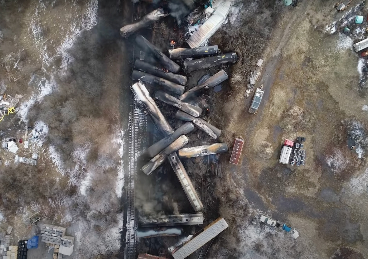 5 февраля грузовой поезд, перевозивший 50 контейнеров с опасными веществами, сошел с рельсов в американском штате Огайо. После крушения вагоны охватило пламя. Для предотвращения еще большей опасности, чем выброс химикатов, вскрыли емкости с веществами, чтобы провести их контролируемый поджог.