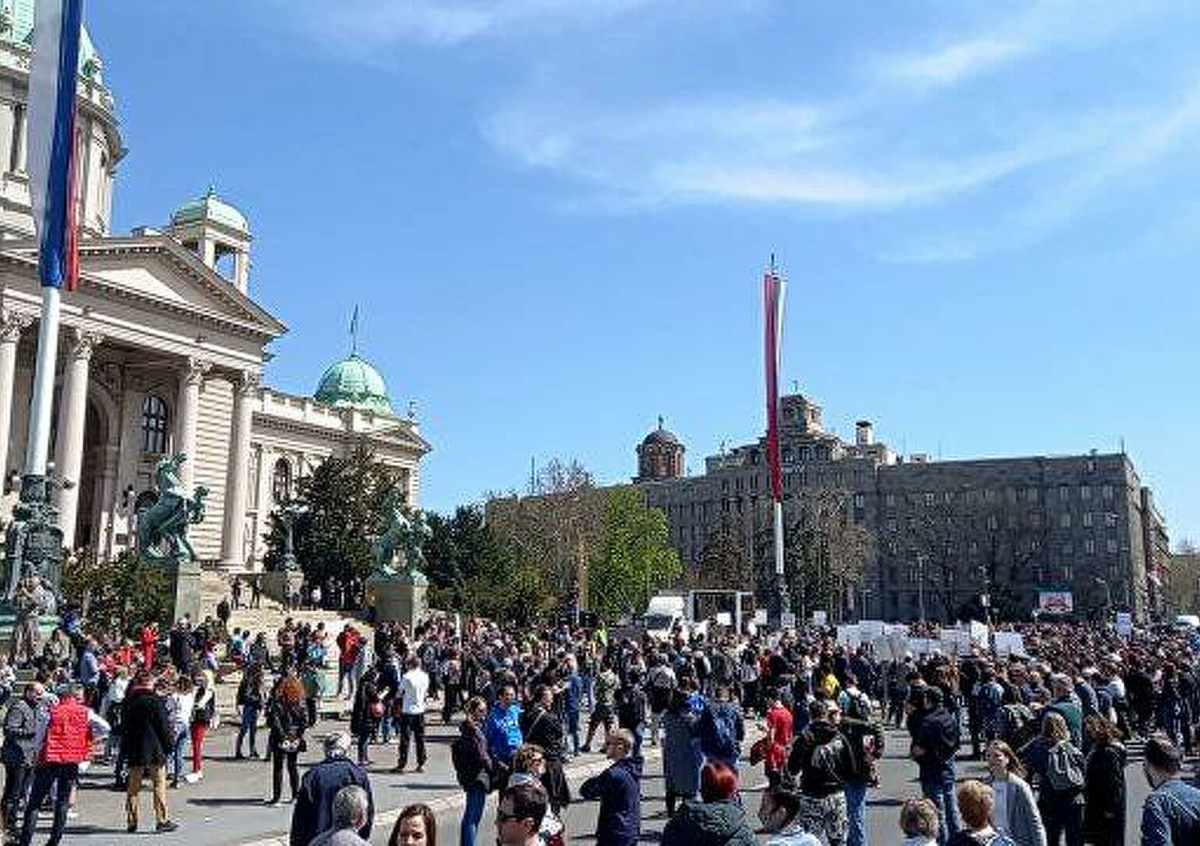 После этого участники акции устроили шествие по центру Белграда с плакатами и под музыку. В ходе марша к ним присоединились предприниматели, которых не устраивают экономические меры властей в период пандемии. Демонстрация проходила мирно, полиция в неё не вмешивалась, сообщает РИА Новости.