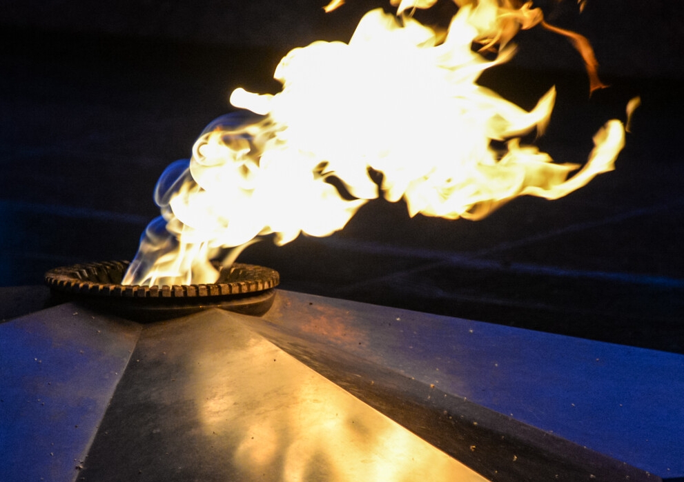 Глава государства также установил лампадки возле скульптуры — солдата, который снимает головной убор перед родной землёй, а к его груди прижалась освобождённая из нацистского плена женщина.