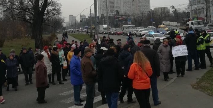 Жители Киева перекрыли в городе съезд с проспекта Победы из-за отсутствия отопления в доме.
