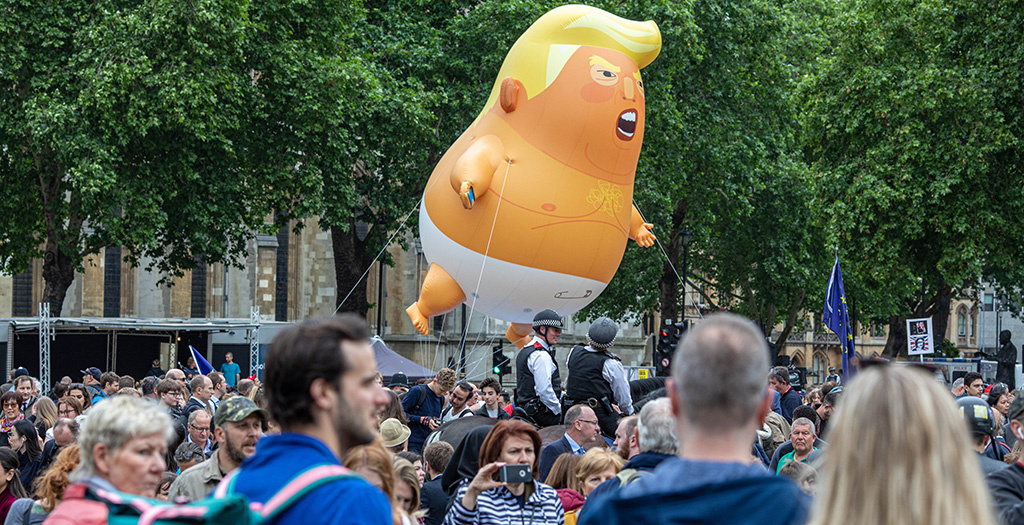 Участники акции протеста против визита президента США Дональда Трампа в Великобританию организовали на площади перед зданием британского парламента в Лондоне акцию «Карнавал сопротивления». В рамках митинга они запустили в небо знаменитую шестиметровую фигуру Trump Baby («Малыш Трамп»).