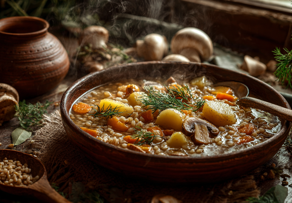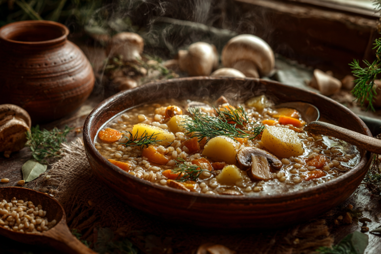 Это блюдо стоит приготовить, когда хочется сытной, полезной еды без мяса. Перловка придает рагу густоту и насыщенность, а грибы — приятный аромат.