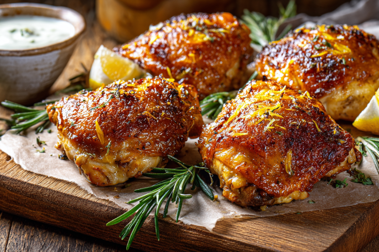 Возьмите 4 куриных бедра без кости, но с кожей — кожа нам нужна, она станет главной «фишкой» блюда. Обсушите их бумажными полотенцами насухо, это обязательное условие. В миске смешайте 1 чайную ложку соли, 0,5 чайной ложки свежемолотого черного перца, 1 чайную ложку сушеного розмарина и цедру одного лимона. Этой смесью щедро натрите бедра со всех сторон, особенно тщательно втирая в кожу. Оставьте мариноваться на столе на 15 минут, пока аэрогриль разогревается до 200 градусов.