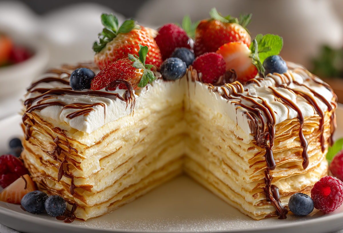 Если вы устали от классических тортов, этот десерт станет настоящим открытием. Тонкие домашние блины в сочетании с воздушной сырной начинкой создают текстуру, которая напоминает дорогое ресторанное пирожное, но готовится в разы проще.