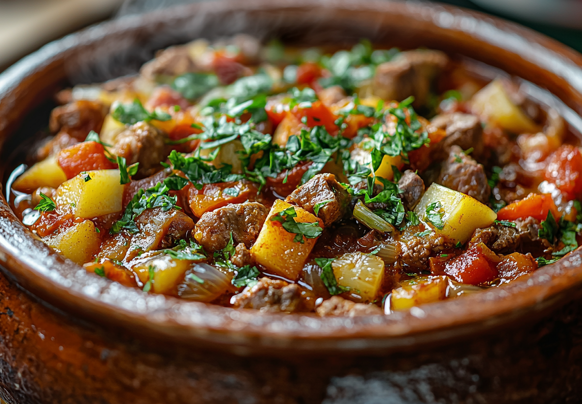 Классический гювеч готовится из сочных баклажанов, нежных кабачков, спелых помидоров и ароматного сладкого перца. К ним добавляют репчатый лук и чеснок для пикантности. Овощи, нарезанные крупными кусочками, заправляют душистым оливковым маслом, солью, черным перцем и щепоткой сушеного базилика. Смесь выкладывают в форму, накрывают крышкой и томят в духовке до мягкости и полного раскрытия вкусов. Готовое блюдо обладает насыщенным вкусом и чудесным ароматом, а перед подачей его можно украсить свежей зеленью для завершающего акцента.