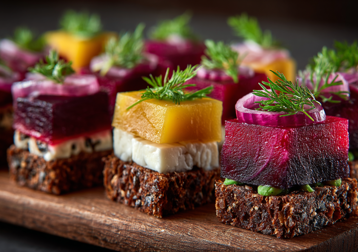 Ищете эффектную идею для праздничного фуршета? Эти слоеные канапе выглядят как мини-шедевры, но готовятся за считаные минуты. Секрет их оригинальности — в тончайших пластинках отварной свеклы, которые заменяют привычную основу и придают закуске нежную текстуру и сладковатый акцент. Это и есть яркий пример простых и вкусных закусок на новогодний стол, где недорогие продукты превращаются в кулинарный хит.