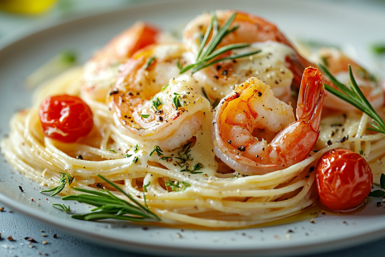 Отварите пасту до состояния аль денте, сохранив немного воды после варки. Пока она готовится, разогрейте оливковое масло на сковороде и быстро обжарьте чеснок до легкого золотистого оттенка. Добавьте креветки и готовьте их не более 2 минут — они должны лишь побелеть и стать упругими. Влейте белое вино и дайте алкоголю испариться, затем добавьте томаты и щепоть чили. Соус должен покипеть 5 минут, чтобы вкусы объединились.