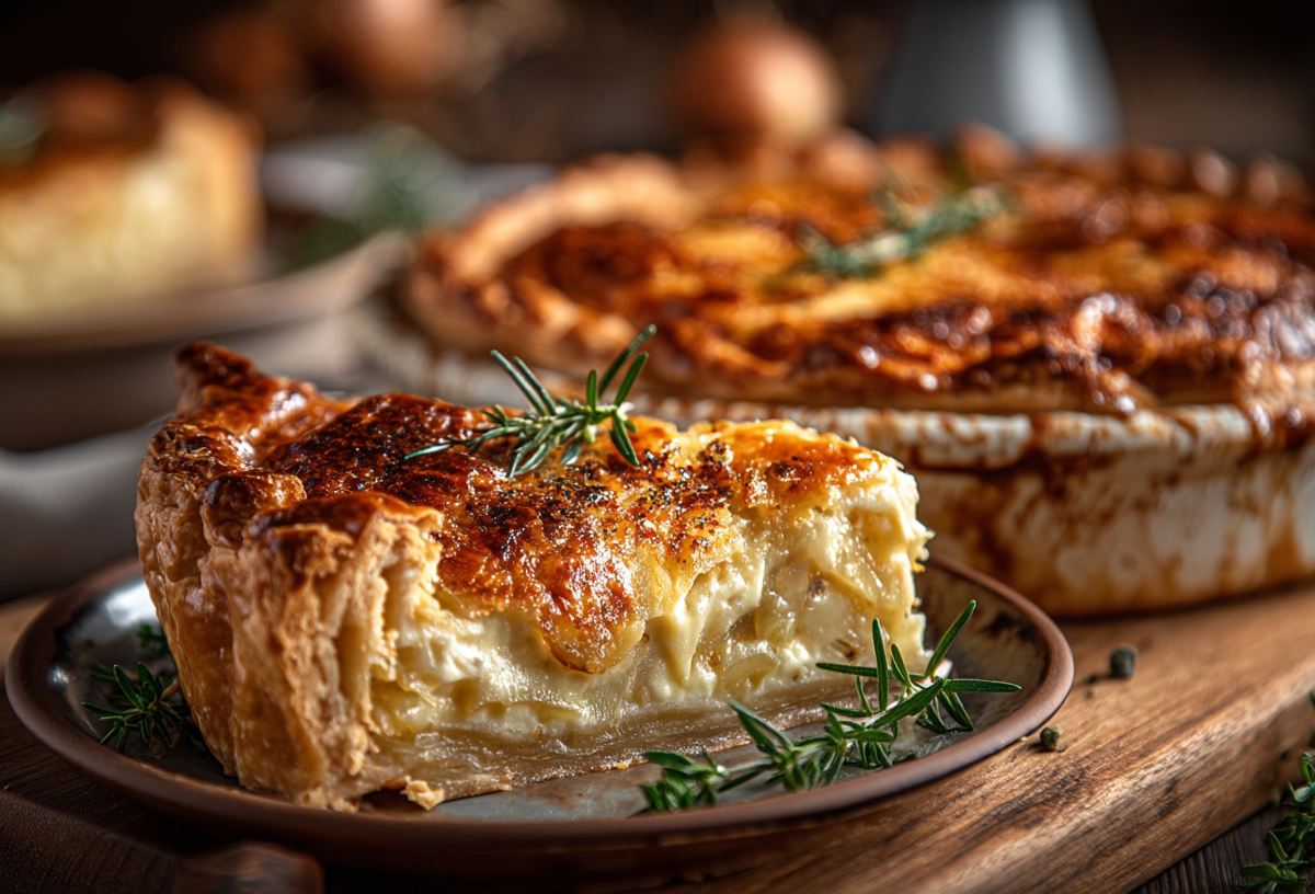 Иногда самые удачные пироги рождаются не из дорогих продуктов, а из смелой идеи. Лук и плавленый сыр — пара, которую редко ставят в центр выпечки, но именно она дает сочность и выразительный вкус. Небольшая хитрость — запекание лука с щепоткой соды: он быстрее размягчается и становится почти кремовым.