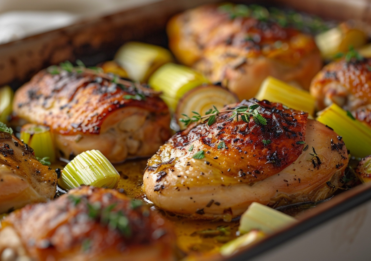 Если вы устали от пересушенной курицы, попробуйте этот необычный рецепт сочного куриного филе в духовке. Овощная подушка из лука-порея и сельдерея отдает влагу мясу, создавая эффект паровой бани прямо в духовке. Филе получается нежным, а овощи впитывают все мясные соки.