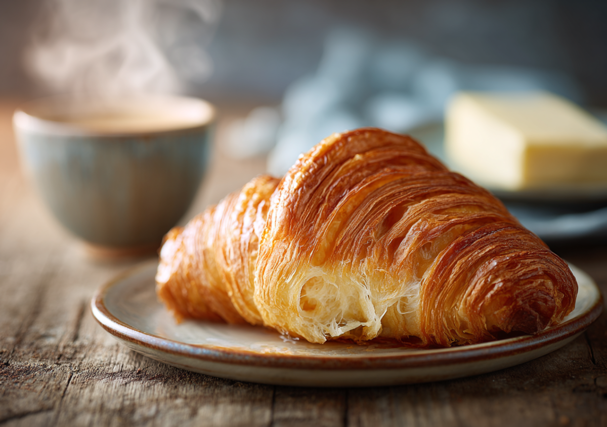 Классические круассаны начинаются с приготовления эластичного теста. Для основы соединяются мука, прохладная вода, молоко, сахар, соль, свежие дрожжи и размягченное масло. Замешивается упругое тесто, которое формируется в шар, убирается в пищевую пленку и отправляется для длительного охлаждения — на несколько часов.