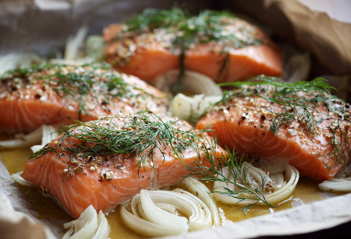 Духовку разогреваем до 200 °C. Пока она греется, в чаше соединяем столовую ложку зернистой горчицы, две столовые ложки цветочного меда и сок половины лимона, перемешиваем. Луковицу шинкуем тонкими полумесяцами и обильно переминаем с веточками укропа — это будет наша душистая подушка от жара. Противень застилаем пергаментом, выкладываем лук горкой, а сверху — стейки. Теперь главный ритуал: щедро наносим кисточкой наш медово-горчичный маринад. Отправляем в духовку на 20–25 минут. Подаем, не нарушая композиции, — на луковой подушке, полив соком. Гарнир? Пожалуй, он будет лишним для такого самодостаточного блюда.