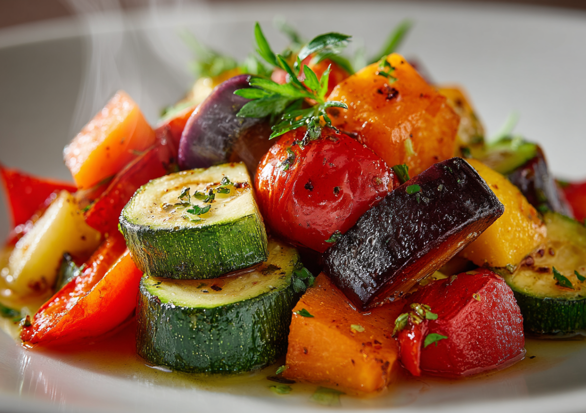 Чтобы приготовить тушеные овощи, возьмите кабачки, баклажаны, морковь и болгарский перец. Пропорции определяйте на свой вкус. Нашинкуйте все кубиками, обжарьте на небольшом количестве масла, затем добавьте томаты и специи. Тушите под крышкой до мягкости овощей — вкус будет насыщенным и сбалансированным. Это низкокалорийное второе прекрасно дополнит ваш рацион и зарядит энергией на вечер.