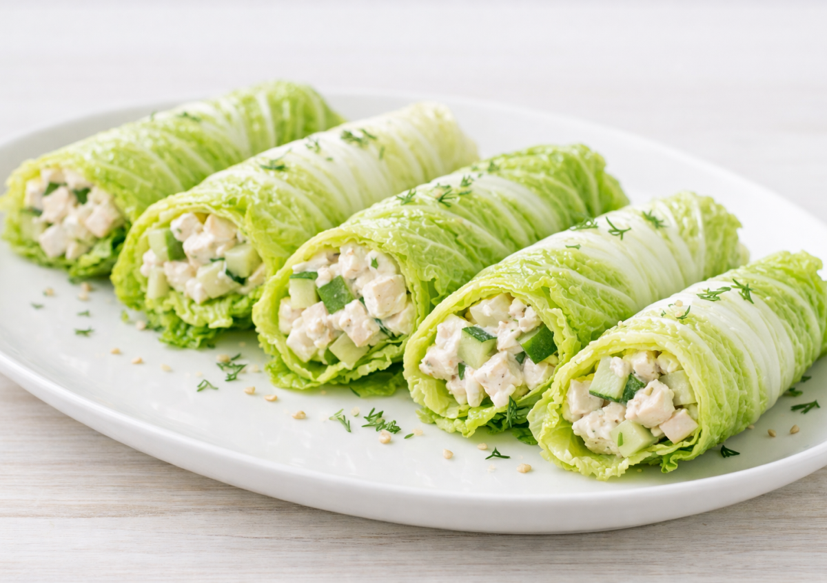 На широкую часть каждого подготовленного листа выложите 1–1,5 столовые ложки начинки. Не переполняйте! Сформируйте аккуратную лодочку: подверните боковые края листа внутрь, а затем сверните от широкой части к узкой, как голубец или спринг-ролл. Должна получиться плотная компактная трубочка с начинкой, полностью завернутой в нежный капустный лист. Выложите готовые лодочки на блюдо швом вниз. Подавайте немедленно.