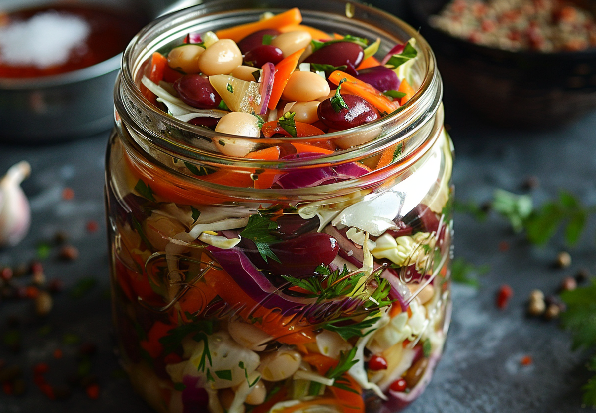 Сытный салат на зиму с капустой и фасолью — это полноценная витаминная закуска, которая отличается насыщенным вкусом и питательностью. Такой салат с капустой и фасолью обладает приятной хрустящей текстурой и отлично дополняет любое основное блюдо. Его рецепт на зиму особенно актуален в сезон сбора урожая, когда все овощи находятся на пике свежести.