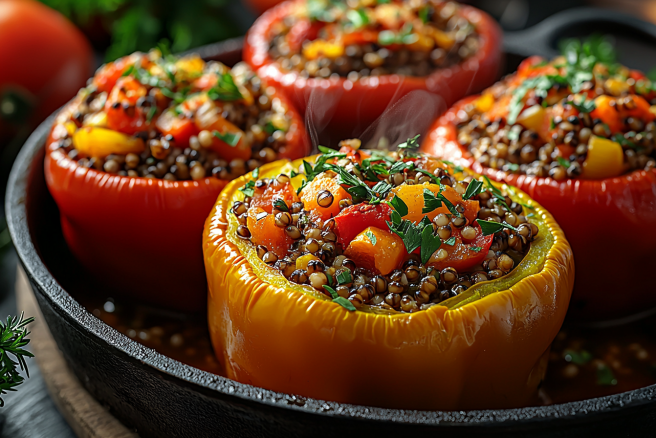 Фаршированные перцы с гречкой — это не только вкусное, но и очень полезное блюдо, которое легко приготовить дома. В нем сочетаются нежные болгарские перцы, ароматная зелень и рассыпчатая гречка, которая хорошо впитывает вкус овощей и специй. Такой вариант особенно понравится тем, кто ищет легкую и полезную альтернативу мясным начинкам.