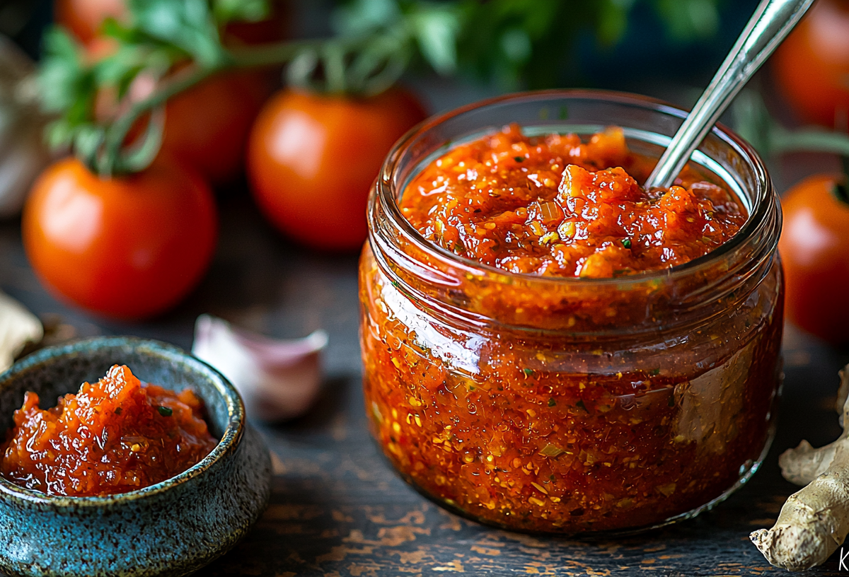 Закуска «Огонек» с имбирем готовится просто. Для нее используют свежие помидоры, чеснок, корень хрена и немного натертого имбиря. Все компоненты измельчают и перемешивают до однородности. В результате получается аппетитная масса с неповторимым вкусом.