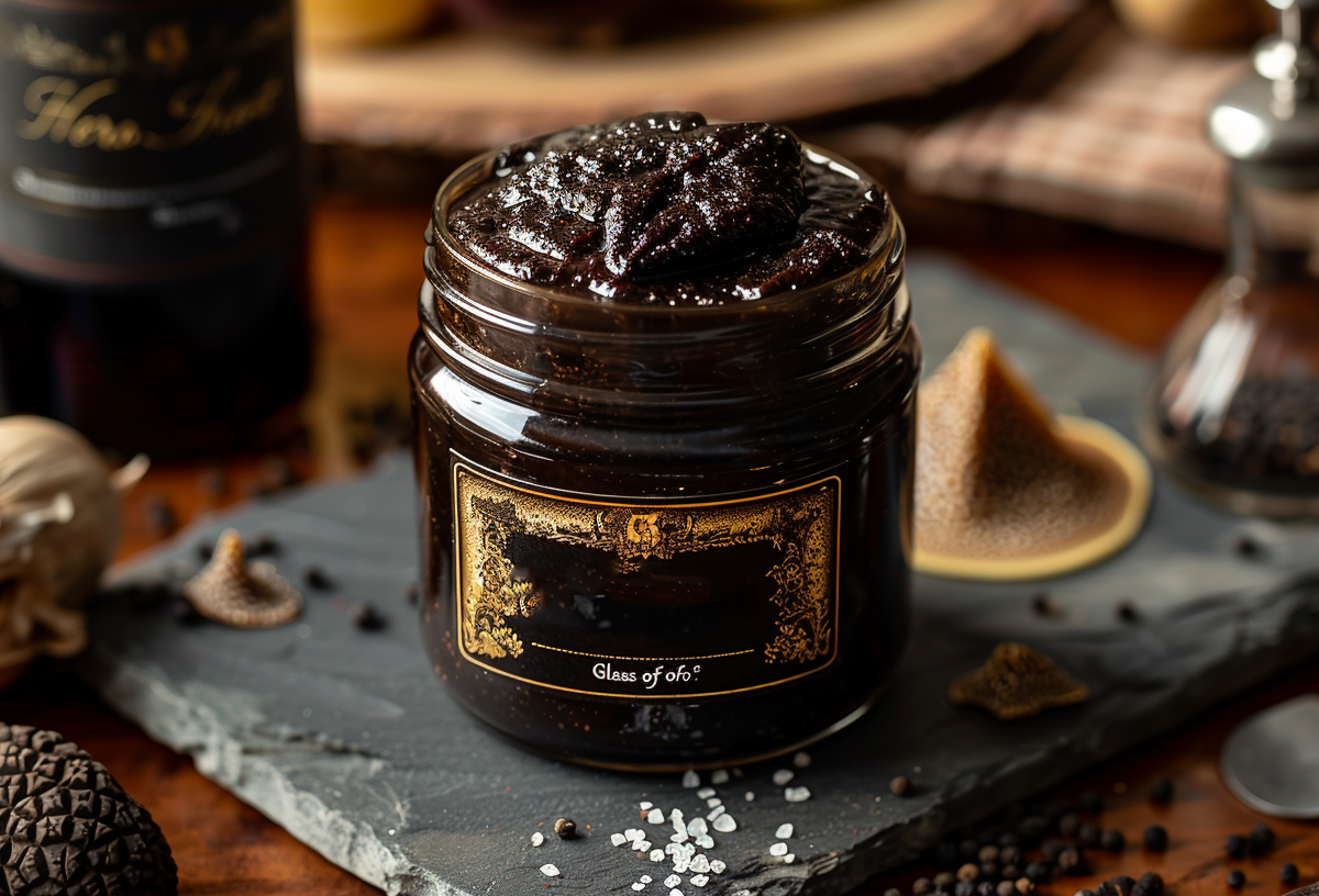 Хреновина «Черный трюфель» с грибами и портвейном — это утонченная версия традиционной приправы. Для приготовления потребуется 300 г хрена, 200 г вяленых томатов, 150 г сушеных белых грибов, 100 мл портвейна, 2 ст. л. трюфельного масла и 1 ч. л. черной соли.