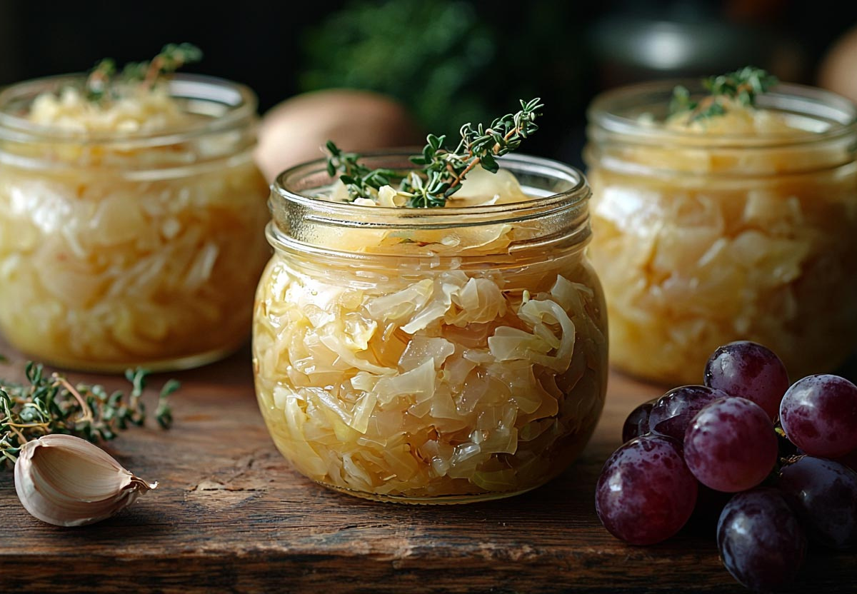 Готовая маринованная капуста с виноградом получается яркой, ароматной и необычно вкусной — легкая сладость ягод гармонирует с пикантной кислинкой маринада. Такая закуска не только украшает стол, но и поднимает настроение своим солнечным вкусом.