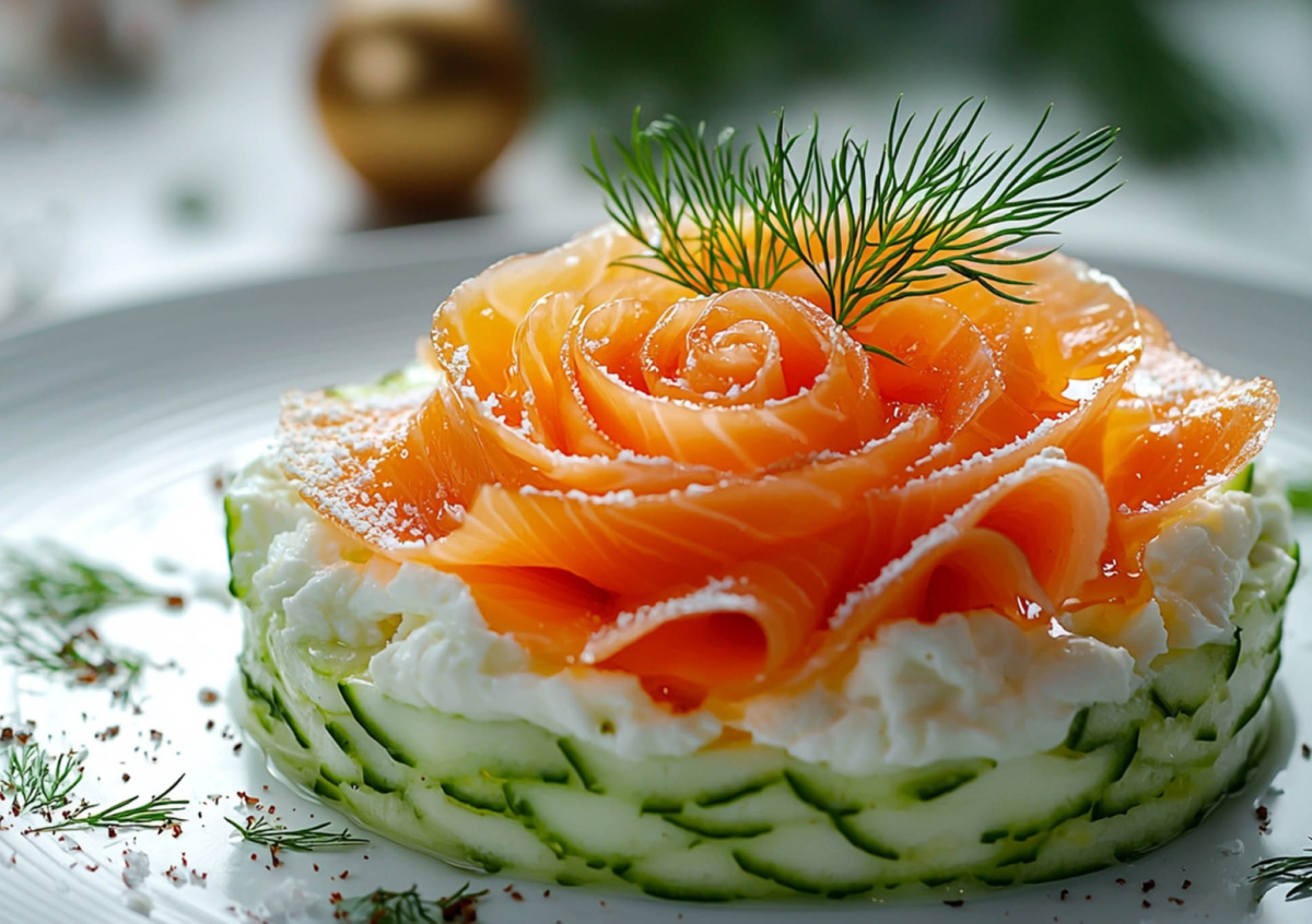 Очищенные топинамбур и авокадо натрите на мелкой терке или измельчите в блендере до состояния нежного пюре. Добавьте ложку греческого йогурта, щепотку белого перца и соль по вкусу, тщательно перемешав до однородности. Полученную массу выложите на тарелку, формируя высокую круглую основу. Тонкие слайсы слабосоленого лосося сверните в виде изящных розочек и украсьте ими салат. Создайте эффект снега и инея, посыпав блюдо тертым яичным белком. Для финального штриха добавьте несколько капель трюфельного масла и веточку свежего укропа.