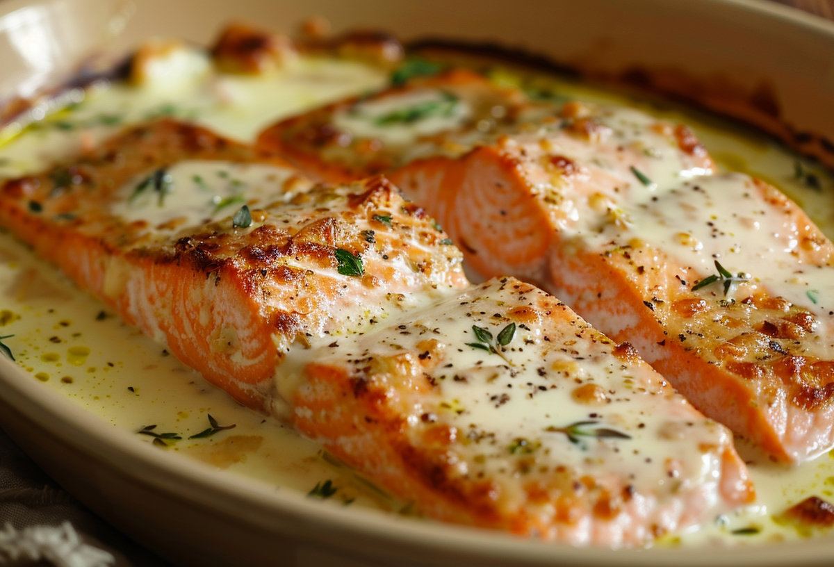 • Главный лайфхак: Используйте не глубокую форму, а небольшую керамическую или стеклянную емкость с высокими бортиками. В ней соус не растечется, а сконцентрируется вокруг рыбы, создавая эффект томления. И не заменяйте сливки сметаной или молоком — только сливки гарантируют нужную текстуру без расслаивания.