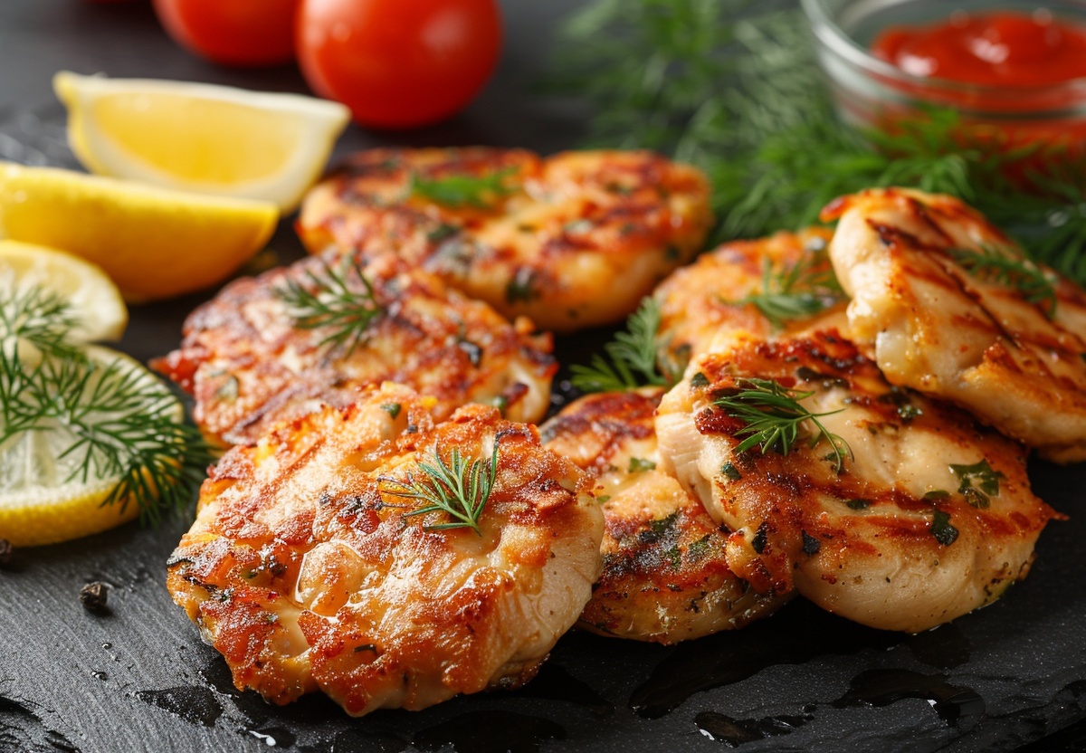Затем в блендере измельчите курицу и овощи до однородности. В полученную смесь вбейте яйца, введите соду, соль и перец, после чего тщательно перемешайте все ингредиенты. Сформируйте оладьи, используя столовую ложку, и выложите их на заранее разогретую и смазанную маслом сковороду.
