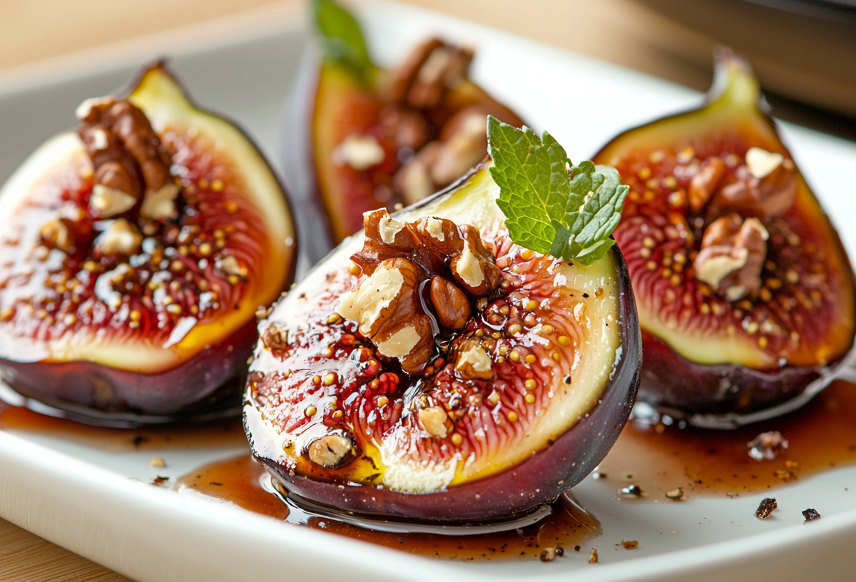Возьмите восемь спелых плодов инжира, разрежьте каждый крестом, не дорезая до основания. Слегка разверните их, как цветки. В небольшой пиале смешайте две столовые ложки густого меда, столовую ложку бальзамического крема и щепотку молотого черного перца. Полейте этой смесью инжир, давая ей стечь в разрезы. Разогрейте аэрогриль до 160 градусов. Выложите инжир в чашу, застеленную пергаментом. Готовьте 7–8 минут, пока на поверхности не начнут появляться крупные пузыри и карамелизованные края. Тем временем на сухой сковороде слегка подсушите горсть грецких орехов. Достаньте инжир, дайте ему слегка остыть. На каждый плод положите по небольшому кусочку козьего сыра, чтобы он чуть оплавился от остаточного тепла. Подавайте сразу, украсив орехами и листиком свежей мяты. Это блюдо станет изысканным десертом или необычной закуской с контрастом сладкого, пряного и сливочного.