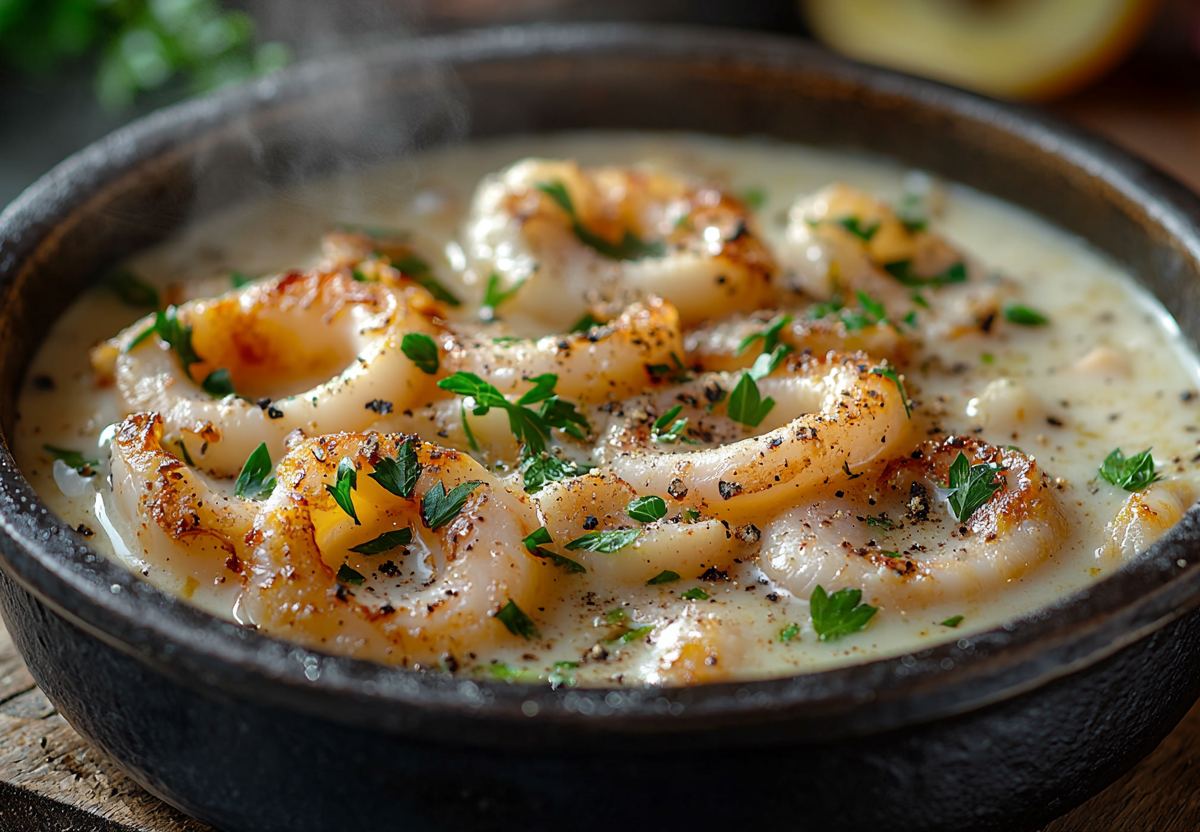 Блюдо с кальмарами в сливочном соусе получается нежным, сливочным и ароматным — отличное решение для праздничного ужина на старый Новый год.