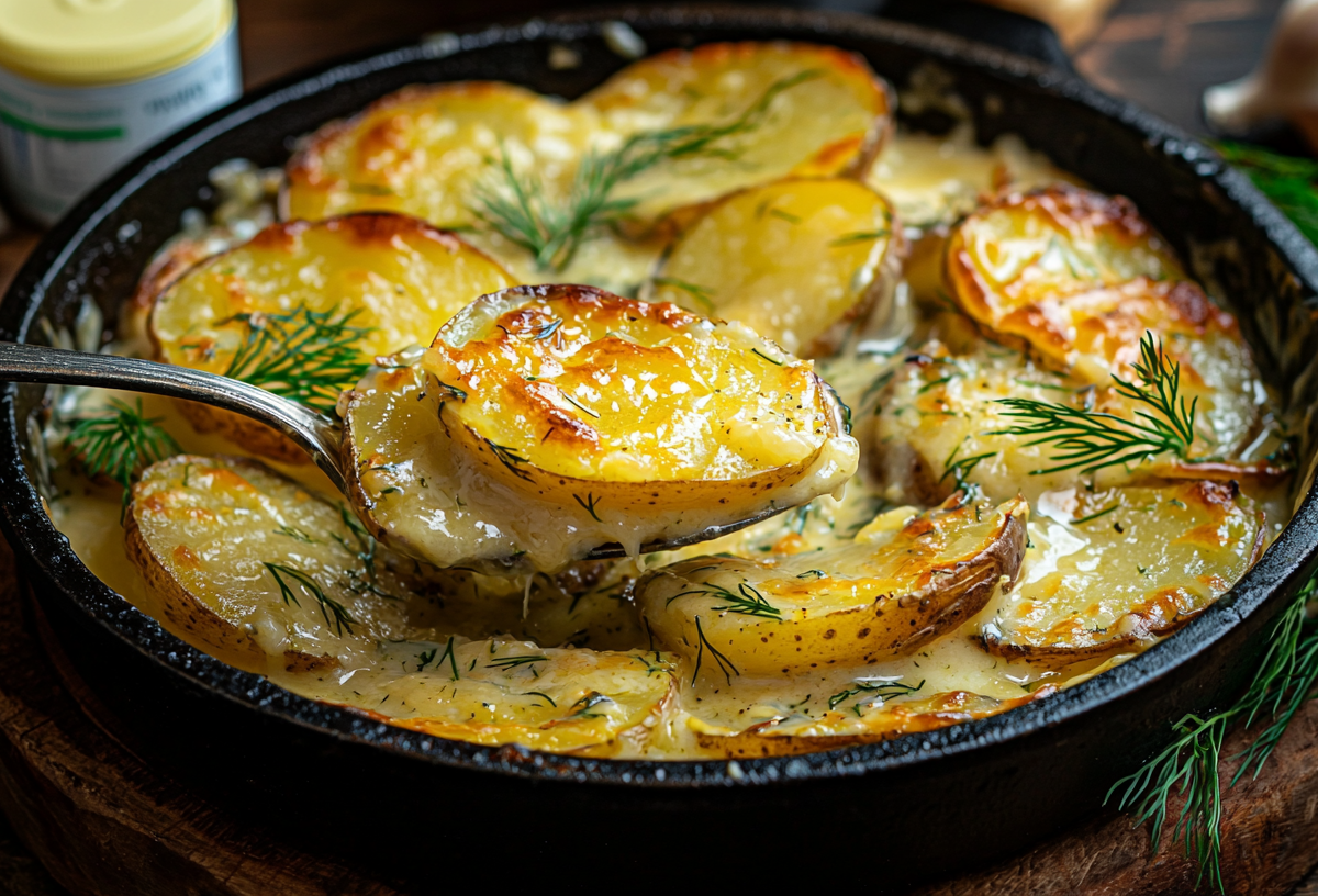 Картофель по-деревенски в духовке с ароматной сливочной заливкой