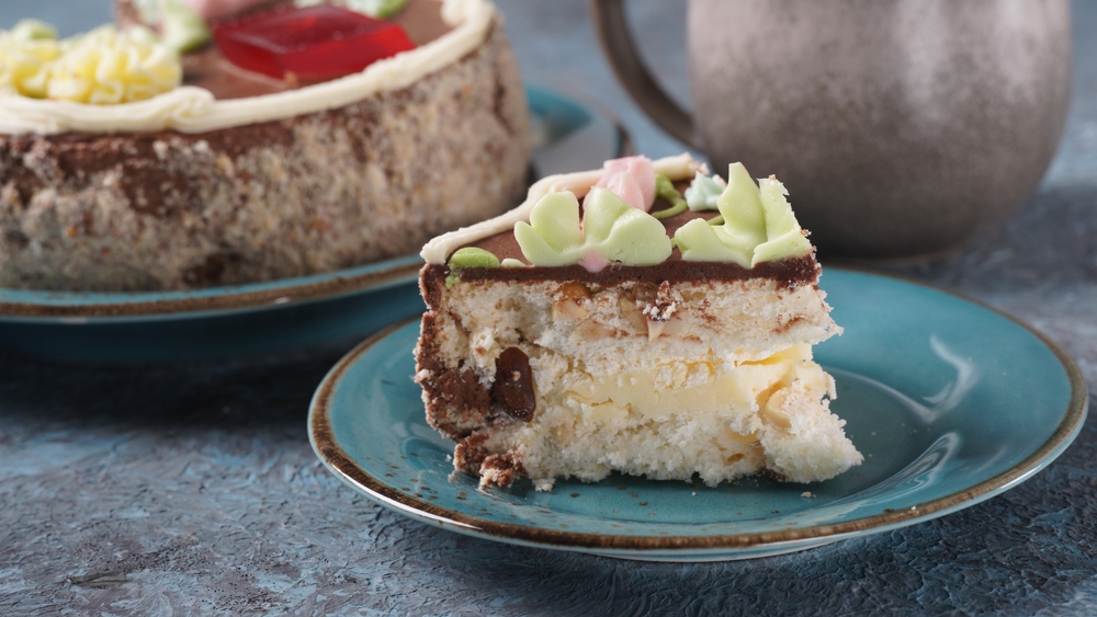 Выбор десертов в советском детстве был достаточно велик — от торта «Птичье молоко» домашнего приготовления до «Степки-растрепки», всевозможных манников и «муравейников». Но торт «Киевский» всегда стоял наособицу — ингредиенты для его приготовления нередко приходилось «доставать», а потому готовили его по большим праздникам. Те времена прошли, и сегодня мы можем приготовить этот десерт в любое время. Что мы и предлагаем сделать!