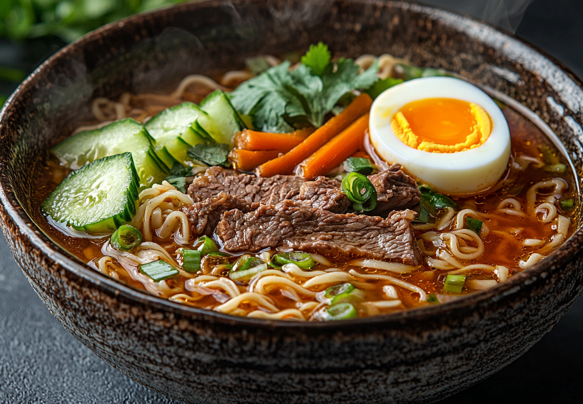 Корейский суп кукси на говяжьем бульоне — легкий и эффективный способ восстановить водный баланс и энергию после бурного праздника. Суп сочетает мягкий вкус говядины, свежесть овощей и легкую остроту соуса.