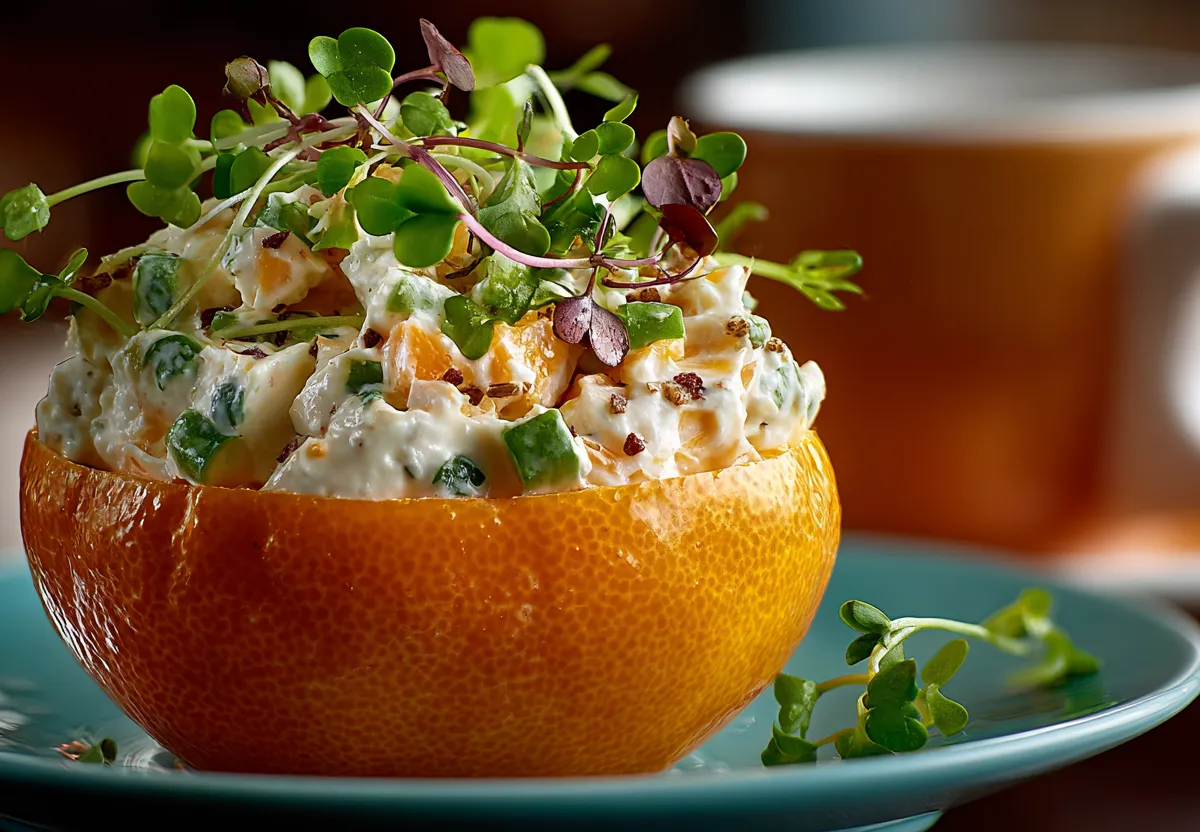 Как подать оливье так, чтобы гости не только насладились вкусом любимого салата, но и оценили эстетику? Предлагаем вам «Кубок вкуса» — блюдо в апельсиновых чашах!