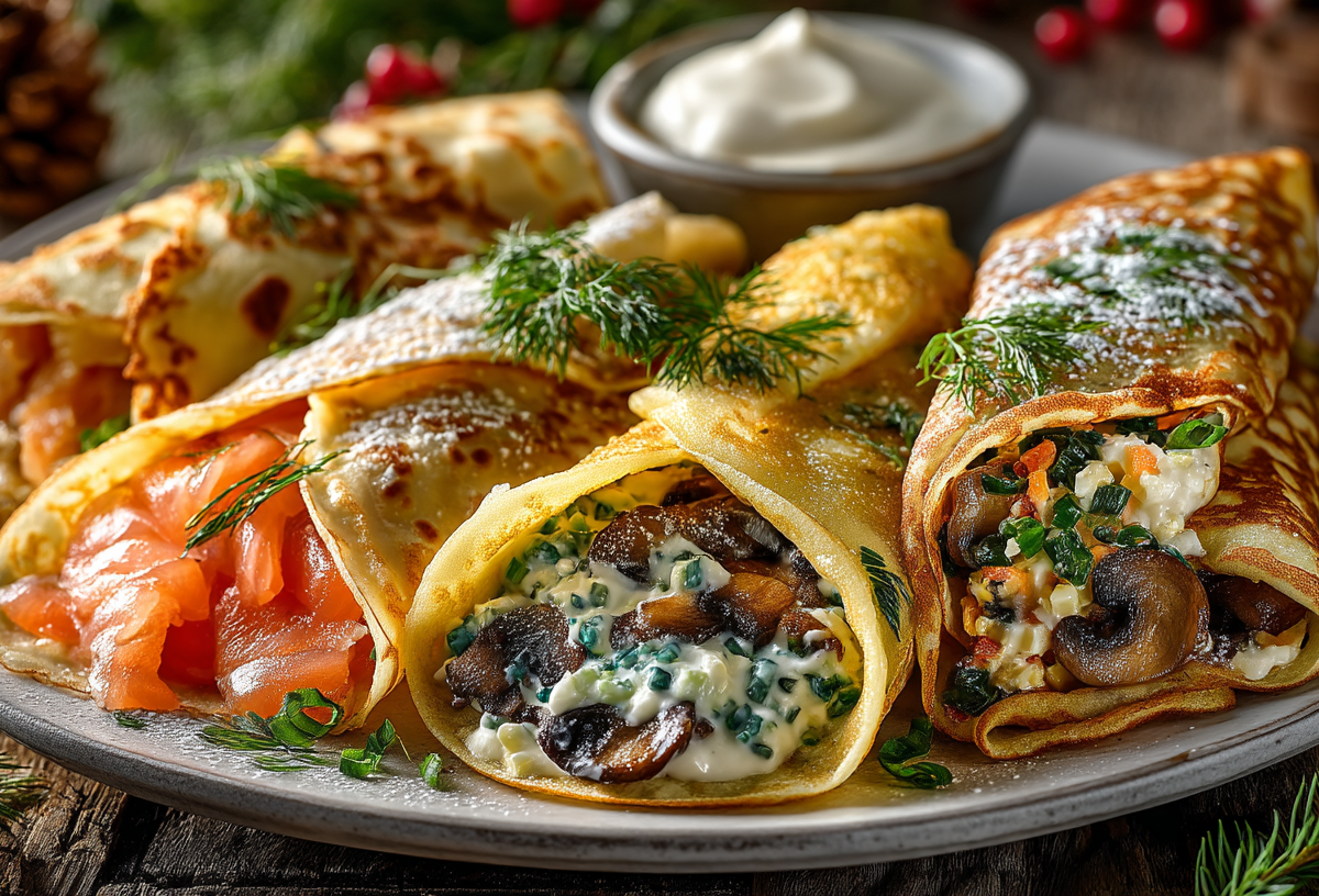 Часто все думают, что блины — это просто, но мы предлагаем взглянуть на них иначе и приготовить блюдо, которое станет настоящим украшением стола. Речь пойдет о фаршированных блинах, но не простых, а с тремя разными начинками, которые дополнят друг друга на одной тарелке.