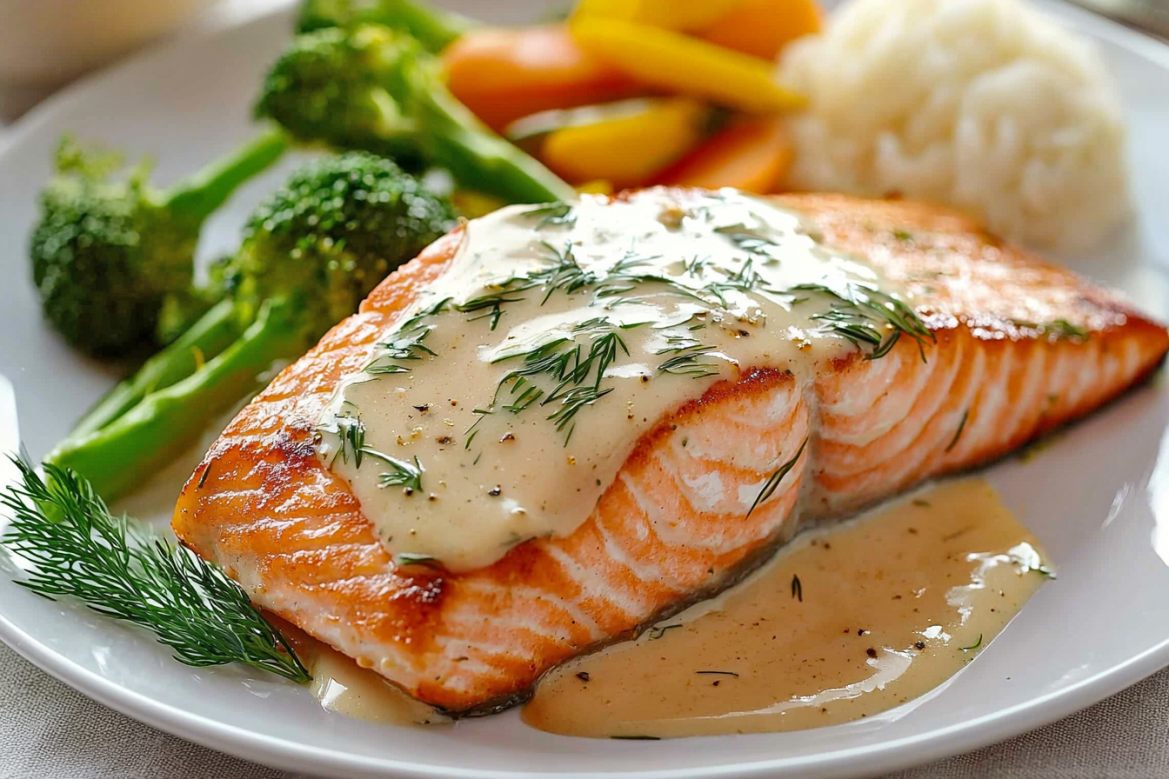 Этот рецепт горбуши в духовке со сливочным соусом идеально подходит для семейного ужина. Рыба получается мягкой, сочной и невероятно ароматной. Для приготовления понадобится 700 граммов филе горбуши, 200 миллилитров сливок 20–30%, 3 зубчика чеснока, 50 граммов сливочного масла, соль, перец и немного свежего укропа для украшения.