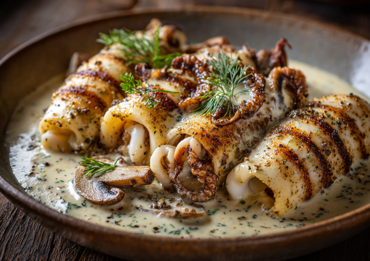 Нежные кальмары с грибным кремом: рецепт для особого случая