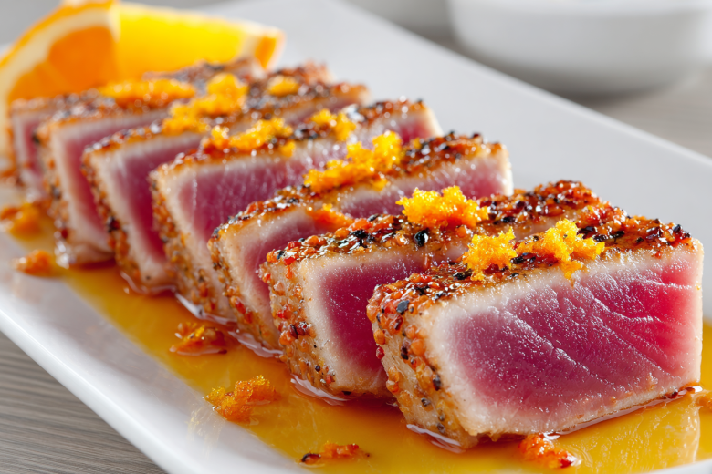 Подавайте с дольками апельсина и легким салатом из руколы, заправленным оливковым маслом. Если вы искали, как приготовить стейк из тунца, рецепт для вкусного ужина без лишних хлопот, но с эффектом дорогого ресторана, — этот вариант станет вашим любимым. Лавандовый мед и апельсиновая цедра создают ту самую изюминку, которую гости пытаются угадать, но не могут.
