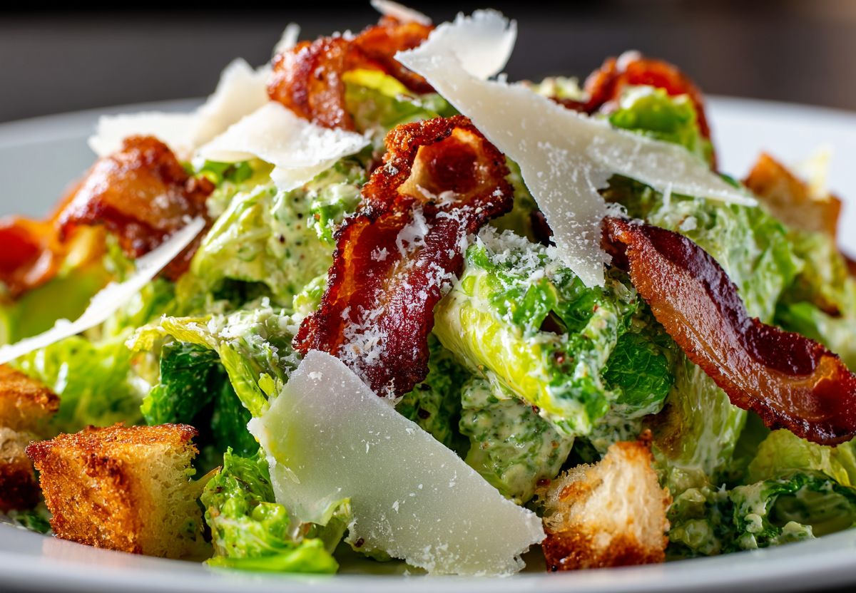 Салат цезарь с авокадо в заправке получается более нежным и сливочным, чем традиционная версия. Авокадо придает блюду деликатную текстуру и дополнительную питательность, а бекон добавляет аппетитный копченый аромат. Этот рецепт идеально подходит для тех, кто хочет разнообразить привычную классику.