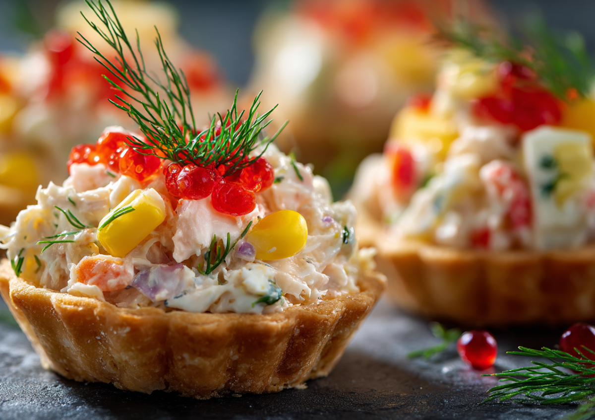 Новогодние тарталетки: готовлю с крабовыми палочками и зеленью