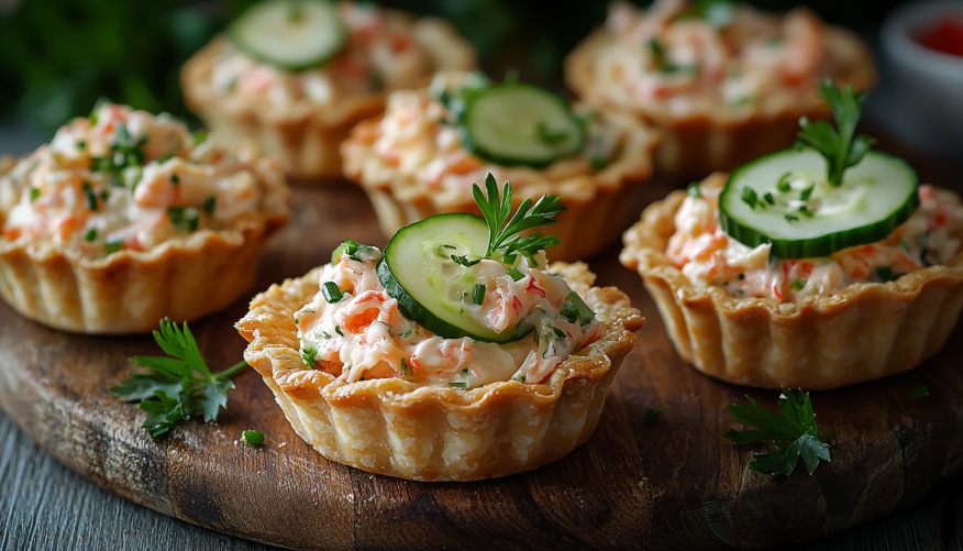Новогодние тарталетки с крабовыми палочками и сыром — готовы за 10 минут!