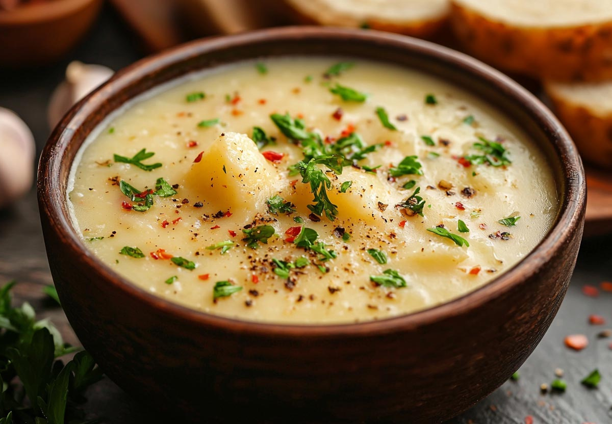 Этот сырный суп понравится даже тем, кто обычно не любит супы. Он сочетает кремовую текстуру, насыщенный сырный вкус и легкую пряность чеснока — блюдо, которое согревает и удивляет.