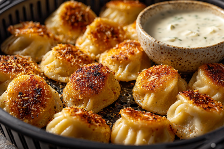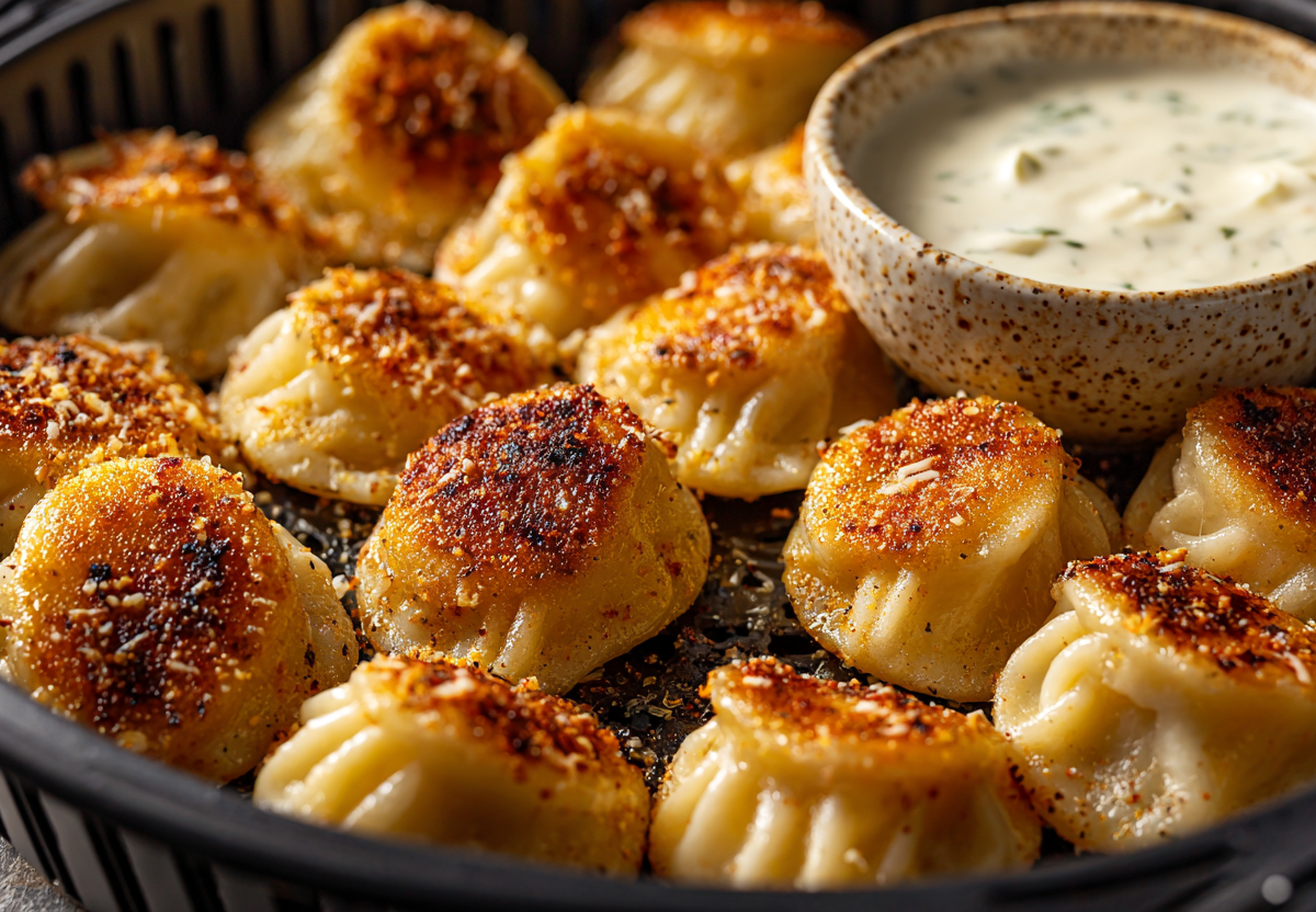 Не пересушите! Как только пельмени стали интенсивно золотистыми и слегка вздулись — они готовы. Подавайте их с соусом из сметаны, чеснока и мелко порубленного маринованного огурчика.