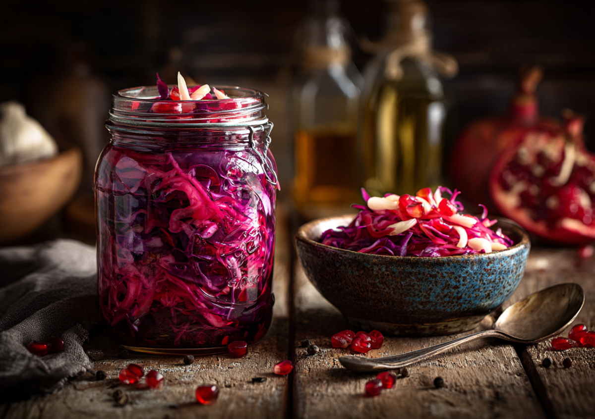 Для приготовления вам понадобится половина крупного кочана капусты (примерно 500 г) и одна средняя свекла. Именно осенью эти овощи набирают максимальную пользу и вкус. Остроту и согревающий аромат зададут 3 зубца чеснока и 1 стручок острого перца. Подготовьте литр воды, 100 мл яблочного уксуса, столовую ложку соли, 1,5 ст. л. сахара, а также по чайной ложке семян укропа и фенхеля, чей теплый запах идеально соответствует октябрьскому настроению. Нашинкуйте капусту крупными кусками, а свеклу нарежьте тонкими пластинами — так овощи лучше пропитаются и будут эффектно смотреться на тарелке. Сложите их в эмалированную кастрюлю, равномерно перекладывая чесноком и перцем. Горячим маринадом, в котором специи уже успели раскрыть свой аромат, полностью залейте овощи. Установите сверху гнет — это ключевой момент для выделения жидкости и начала процесса ферментации. Оставьте заготовку при комнатной температуре на 8–12 часов, а затем уберите минимум на двое суток в холодильник. Капусту можно подать, сбрызнув ореховым маслом и украсив зернами граната, который также является сезонным октябрьским фруктом.